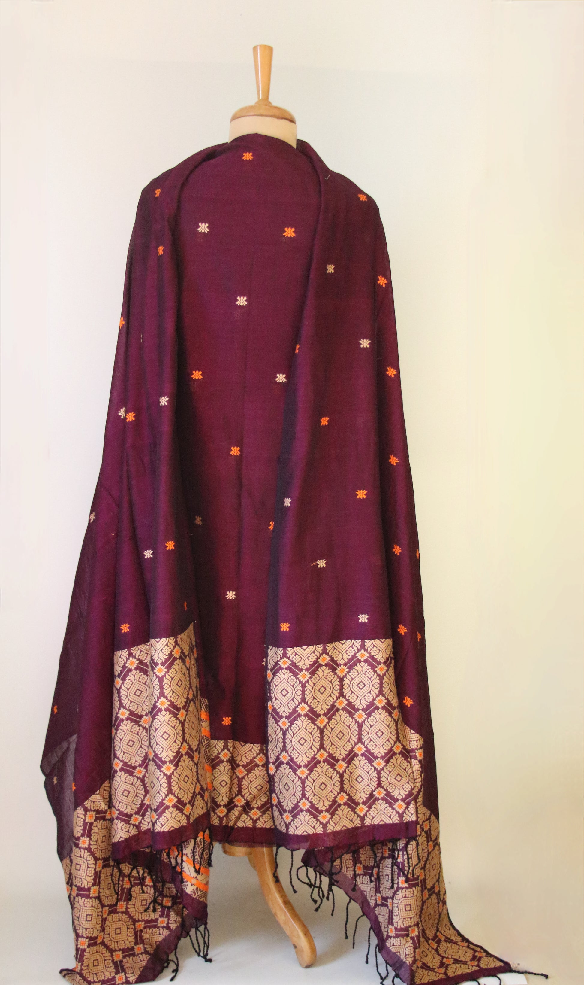 Purple Handwoven 3 Pc unstitched Suit Set from our looms in Assam , India .
